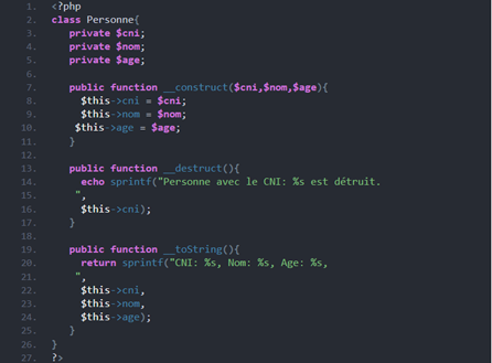 $personne1 et $personne2 référençant le même objet. Pourtant, le destructeur de $personne2 est appelé car l’objet indiqué par $personne2 n’est plus utilisé.