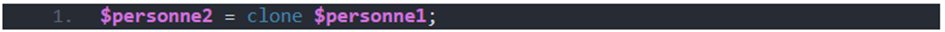 Lorsque nous exécutons l’instruction ci-dessus, la référence $personne2 pointe vers le nouvel objet créé. En plus, lors de l’exécution, la méthode magique __clone() est invoquée automatiquement.